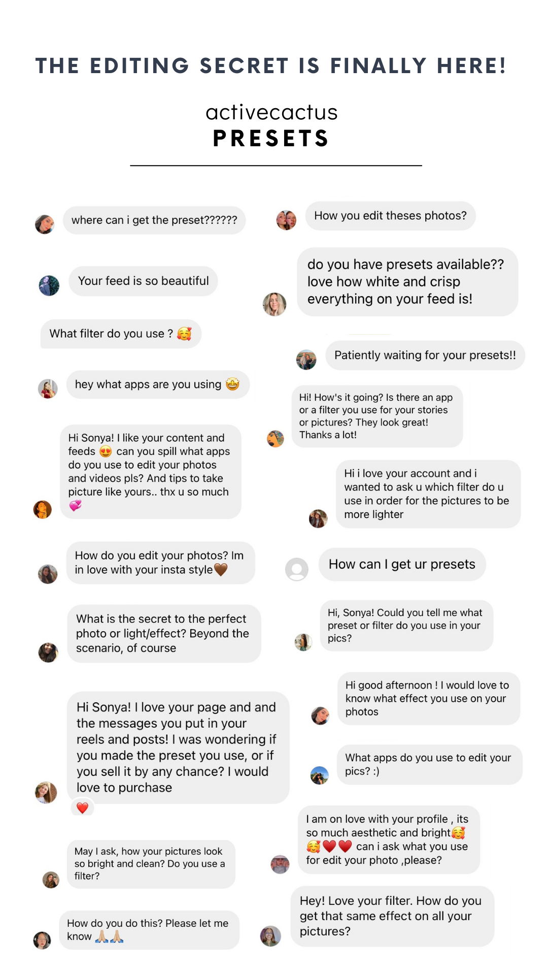 @activecactus: "I always get tons DM’s and questions about how I edit my photos to get a clean bright & airy effect. I have spent more than a year making & perfecting a preset/filter which I use on all my photos! I am so happy to finally share that exact preset/filter with you. Get ready to beautifully transform your photos with just one click."