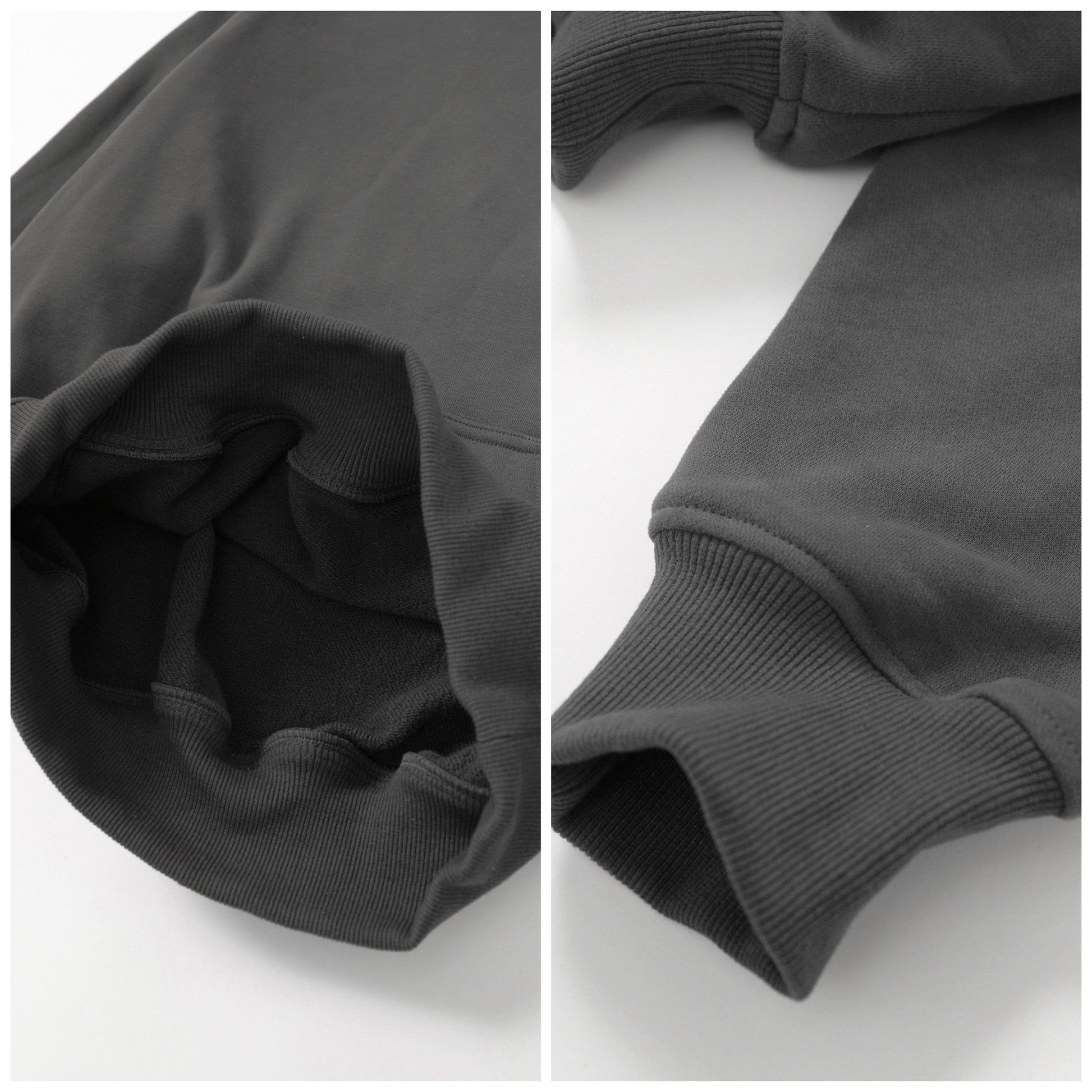 The fabric is mid-weight. It has soft material on the outside and fuzzy material on the inside for an extra comfy feel. It's stretchy, durable, and super easy to slip on. This hoodie offers you a perfect long-lasting and comfortable performance.