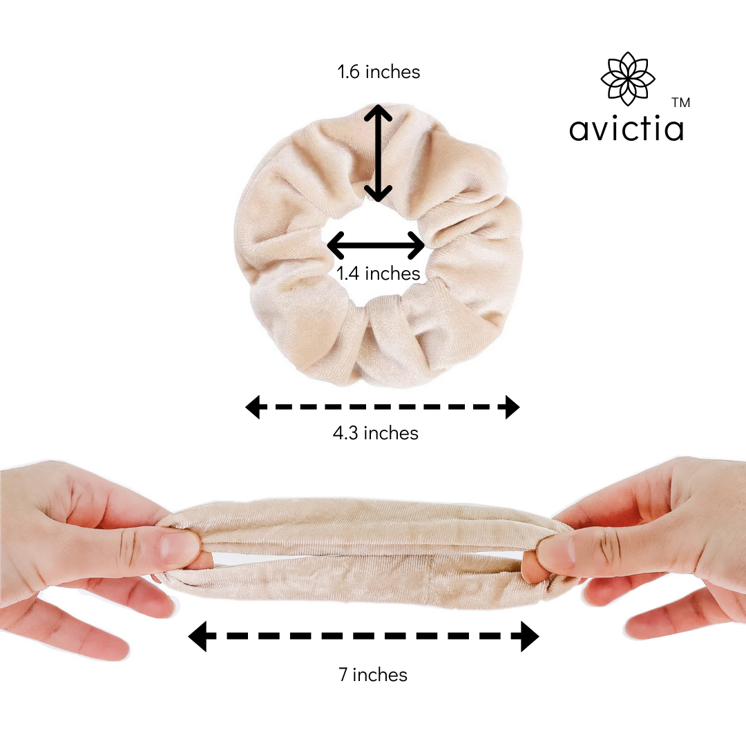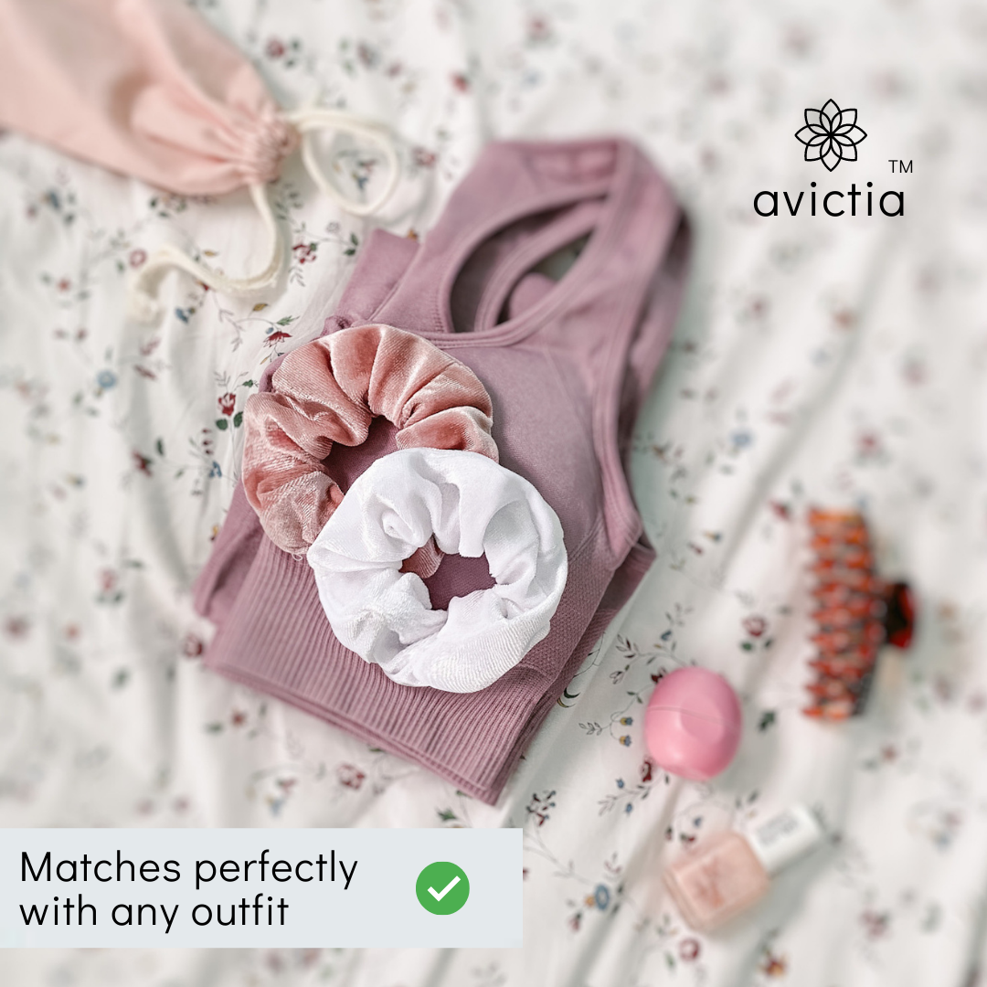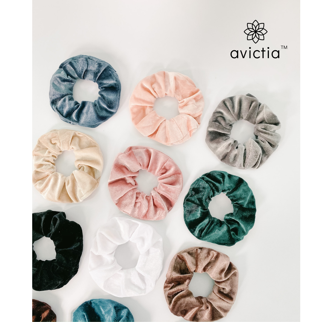 Excellent Quality Velvet Scrunchies - avictia scrunchies are delicately crafted with high quality velvet material. The texture is super-soft on your hair, comfortable, and easy to wear. The elastic is strong and durable. avictia scrunchies will flawlessly style your hair while not hurting it. They are perfect for every hair type: thick, curly, thin, straight. Style avictia scrunchies in sleek buns, ponytails, and all your favourite hair styles.